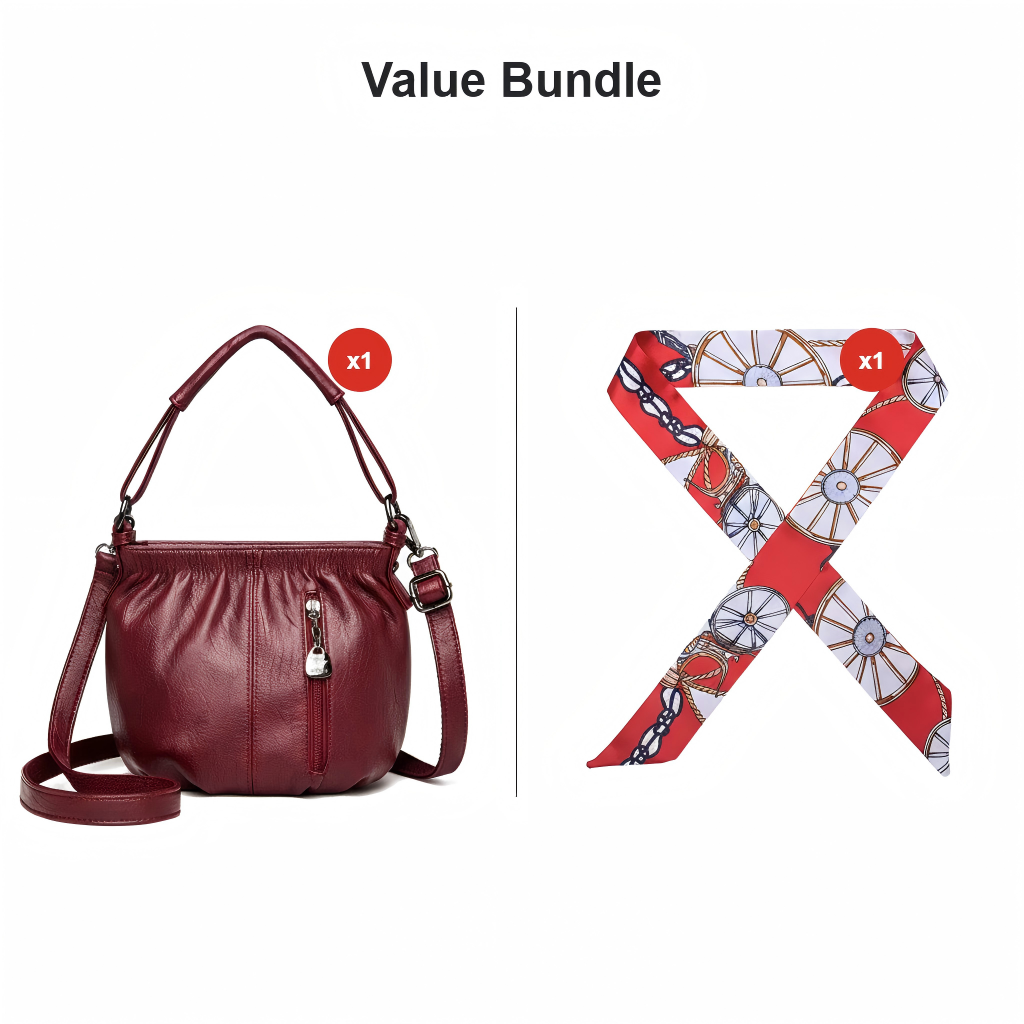 🎀2026 New Arrival🔥Casual Pleated Bucket Soft Leather Handbag Shoulder Bag