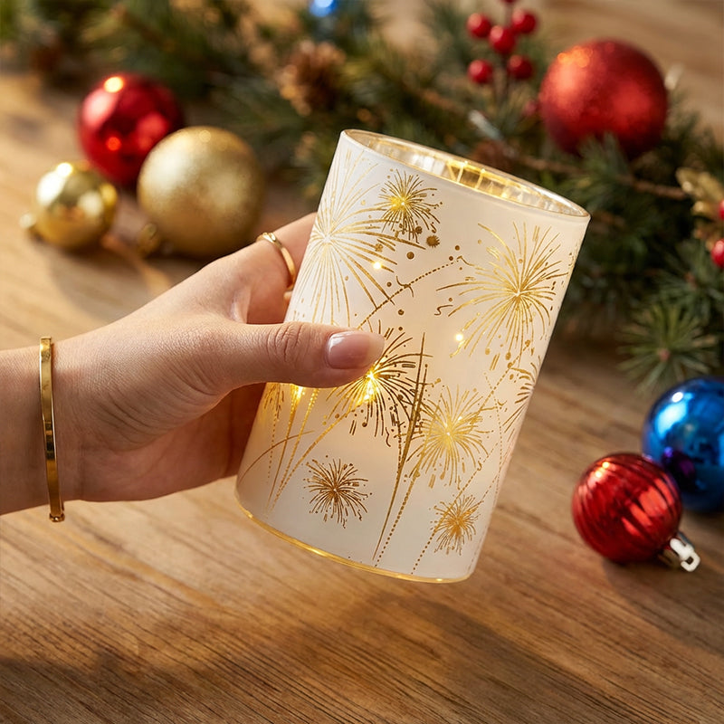PREMIUM GLASS CONSTRUCTION - Crafted from high-quality glass, the holder provides a sleek, elegant look while beautifully diffusing the light, enhancing the visual effect of the fireworks and adding a touch of sophistication to your decor.