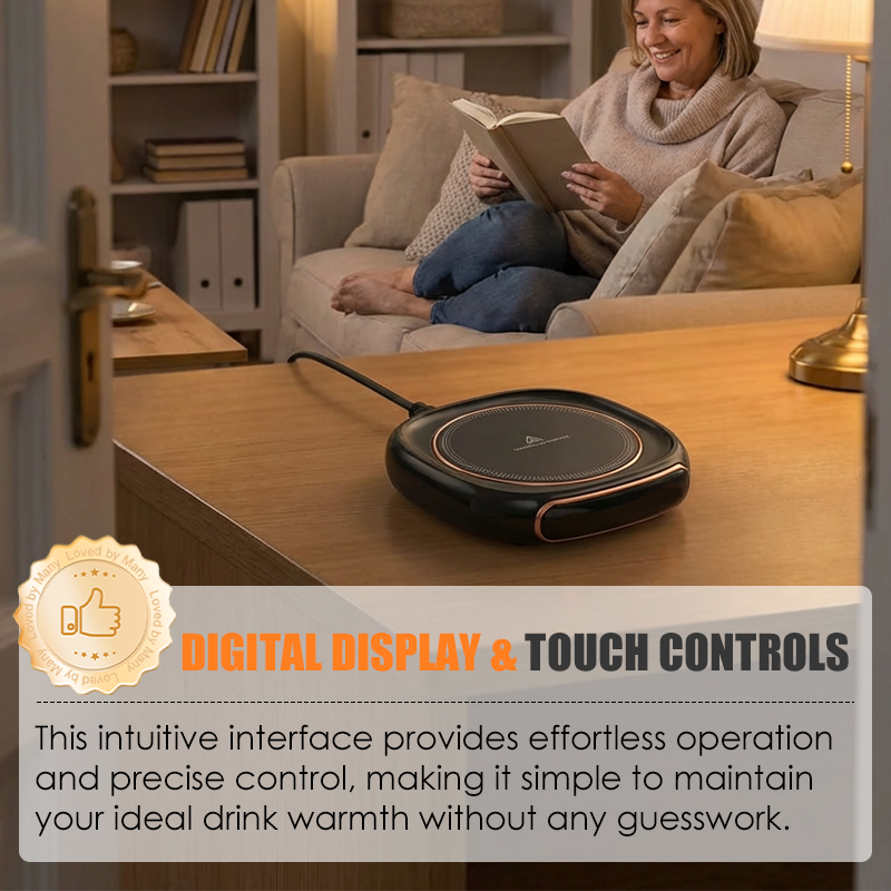 DIGITAL DISPLAY & TOUCH CONTROLS - Easily monitor the current temperature and adjust settings with a simple touch. This intuitive interface provides effortless operation and precise control, making it simple to maintain your ideal drink warmth without any guesswork.